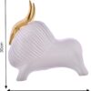 White Yak Sculpture for Home Decor with Golden Horned Decorative Showpiece.